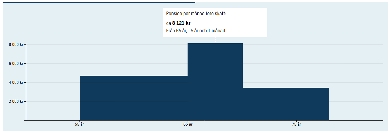 På exemplet under tar jag ut 2 portföljer från jag fyller 55 (4600 kr i 15år) och sen den 3 dje från jag fyller 65år och i 13 år. Exemplet är räknat på 1141000 kr