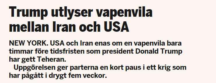 Jag läste när jag kom hem att de ville ha 2 veckor för att förhandla och vi får se hur det förslaget motas av Usa. Att det ens kunde gå så här långt att hota om att förinta en hel civilation, det trodde jag inte men det är det senaste jag läst.